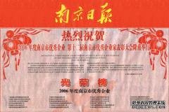 4月30日,南京市人民政府在市委礼堂召开表彰大会, 23家企业被授予2006年度南京市优秀企业称号。 该奖项每两年评选一次,旨在表彰在南京市发展和经济建设中做出突出贡献的企业。市委...