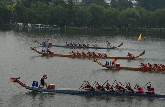 在第一轮小组赛中,艾志环保龙舟队显示出高涨的士气,随着鼓手有节奏的击鼓,选手们配合默契,迅速且规律地划动船桨,与携程网队及投促委队你追我赶,在莫愁湖上演一出上水上“速度与激情”。最终在第一轮比赛中,艾志环保龙舟队取得小组第二名的好成绩。