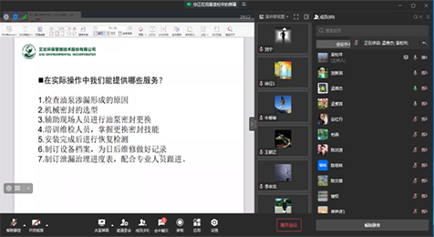 本次视频沙龙的主题是“机械密封的讨论”,参与人员有106人。视频沙龙发布了艾志工业革新性的渣浆泵密封技术——318W旋风机封,这项技术获得国际专利和国内专利,对解决渣浆介质的密封有了革命性的提升。同时就客户现场机械密封的常见问题和如何提高服务质量,分享了解决方法与经验,大家积极参与,各抒己见,收获颇丰。